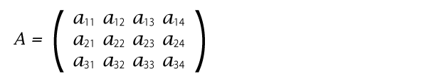 ある固定された環の元を矩形(長方形)状に並べたもの。すべての成分が実数の行列を実行列、すべての成分が複素数の行列を複素行列という。