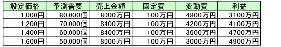 新商品を発売する際、過去の類似商品の売れ行きや潜在需要の見定めなどの分析をして予想販売量を決定し、それに基づいて最大の利益が出るように商品の価格を決定します。
